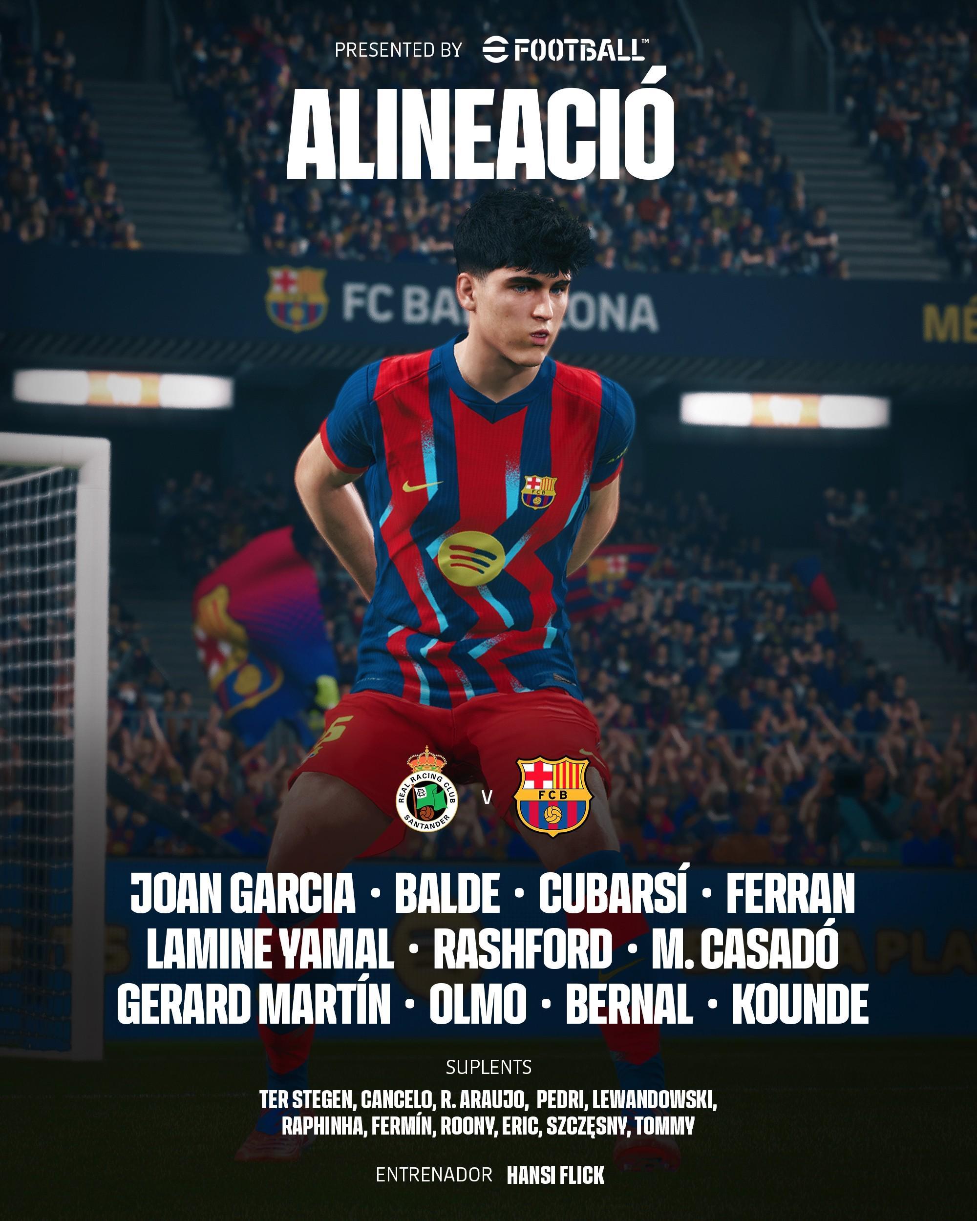 巴萨客战桑坦德:亚马尔、拉什福德首发,奥尔莫、费兰出战