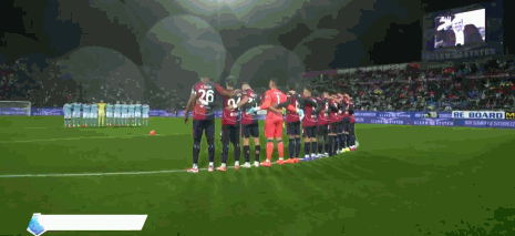 赛前仪式,双方球员为去世的紫百合主席科米索默哀